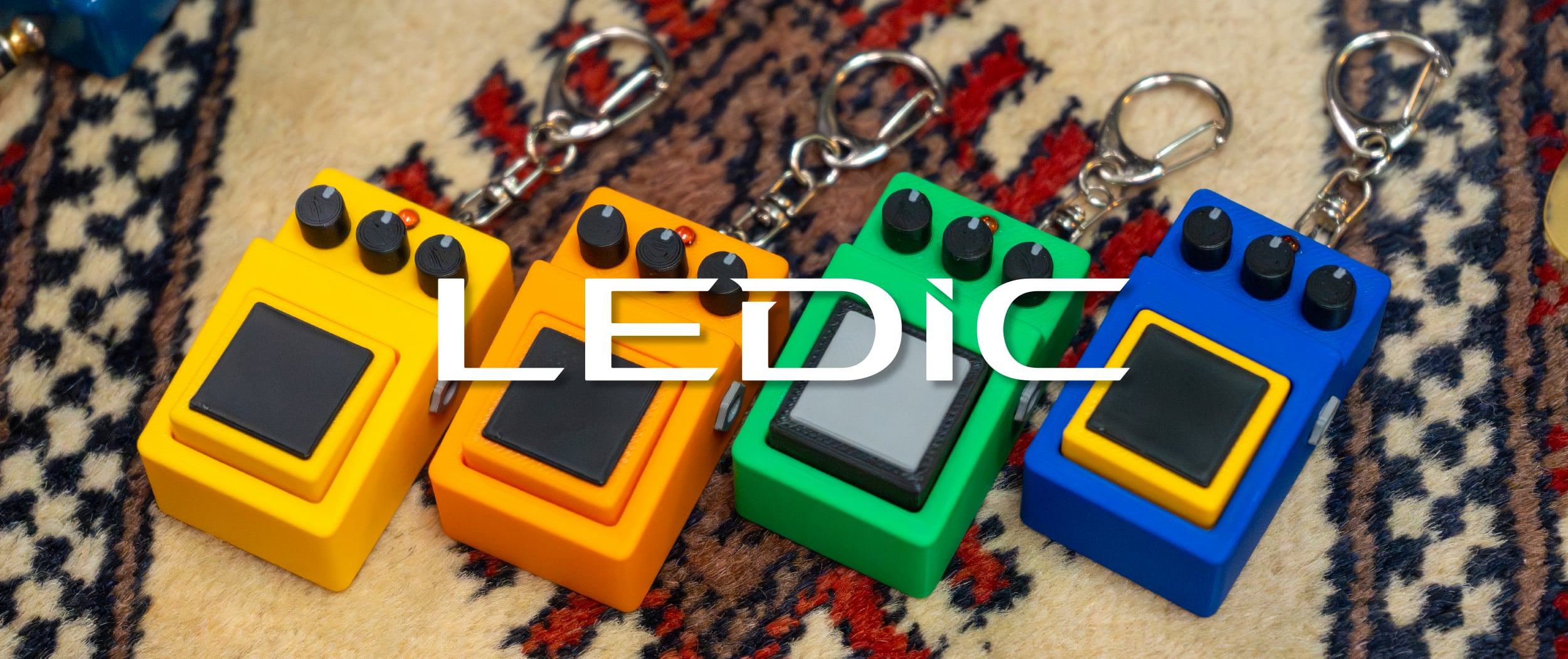 ※こちらは3色のセット販売です。4色(イエロー、オレンジ、グリーン、ブルー)から3つの色の組み合わせを「種類を選択する」というメニューよりお選びになって購入してください。1つずつ購入するより値段がお得で、送料も無料になり、セット販売限定の「シールドケーブル2本」が付属するのが特徴です。 ***** 【商品説明】 コンパクトエフェクター型のフィジェットトイ(クリッカー)キーホルダーです。 ペダル部分を押し込むと「カチカチ」という音と感触が楽しめるおもちゃとなっています。 キーホルダー金具が付いているため、楽器ケースや鞄に取り付けることが可能です。 バンドメンバーや音楽仲間と一緒に楽しくカチカチしてください! 【製品仕様】(1つあたり) ■エフェクタークリッカー本体 サイズ:W 32 × D 56 × H 23.7(mm) 重さ:17.7 g 素材:PLA(本体)、アクリル樹脂(一部パーツ)、合金(金具)など ■シールドケーブル(1本あたり) サイズ:約43mm 重さ:0.9g 素材:PLA(プラグ部)、MOGAMIシールドケーブル ***** 本製品はなるべく接着剤を使わないように設計されており、マルチカラー印刷やはめ込みにて製作することで製品クオリティーを高めています。 そのためつまみやジャック部分を回すことが可能ですが、その分パーツが外れてしまうこともあるかもしれません。基本的には押し込んでいただければ取り付けられますが、もしはめあい部分が欠けてしまった場合には動かせなくなってしまうことをご理解の上、接着剤等をご使用ください。(元々接着しているのはLED部のアクリルパーツのみで、こちらは光ることはありません) また、セット販売限定のシールドケーブルは楽器用ではないものの、本物のMOGAMIシールド(2.5mm径)を使用しています。接着にて固定していますが、ケーブル自体を引っ張るとプラグから抜けてしまい、抜けると修復することは難しいため、ご注意ください。 ***** 【3Dプリンター製品に関する注意事項】 本製品は3Dプリンターを用いて製作されたハンドメイド品です。製造工程の特性上、以下の点についてあらかじめご了承ください。 ・表面の段差やスジといった積層痕は製造方法による仕様です ・わずかな歪みや個体差が生じることがあります ・微細な隙間やバリが発生する場合があります ・強い力や衝撃を加えると破損する恐れがあります ・60℃以上の高温環境では変形する恐れがあります 一点ずつ丁寧に製作しておりますが、工業製品のような完全な均一性や強度はございません。あらかじめご理解のうえご購入ください。 また、本製品は小さなパーツを含む場合があります。誤飲や思わぬ事故の原因となる可能性があるため、小さなお子様やペットの手の届かない場所で保管・ご使用ください。 安全にご配慮のうえ、お取り扱いいただきますようお願いいたします。